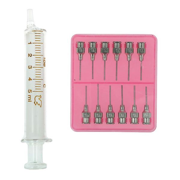 Γυάλινη σύριγγα εφαρμογής χωρητικότητας 5ml με 12 βελόνες.