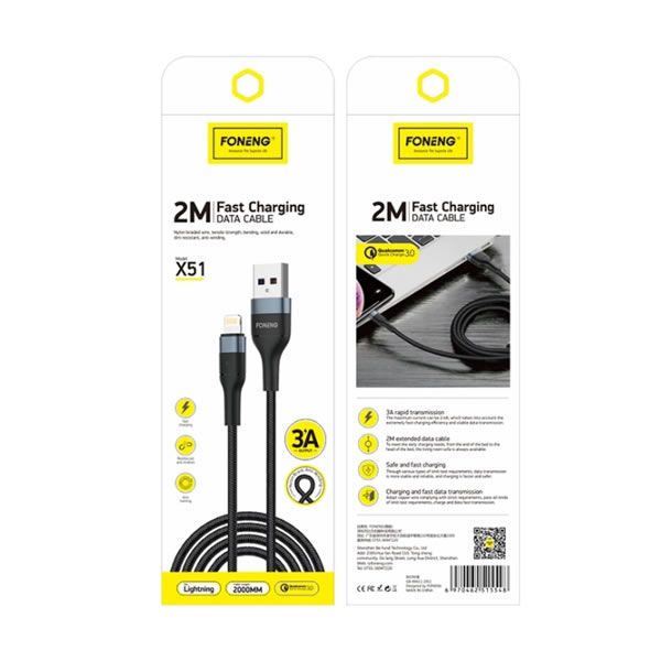 Tags cable Foneng X51 2m lighting, Καλώδιο USB-A to Lighting 2m